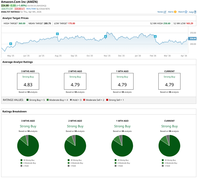 Reflecting these prospects, Wall Street remains broadly optimistic about Amazon’s outlook. AMZN stock currently carries a “Strong Buy” consensus rating.
