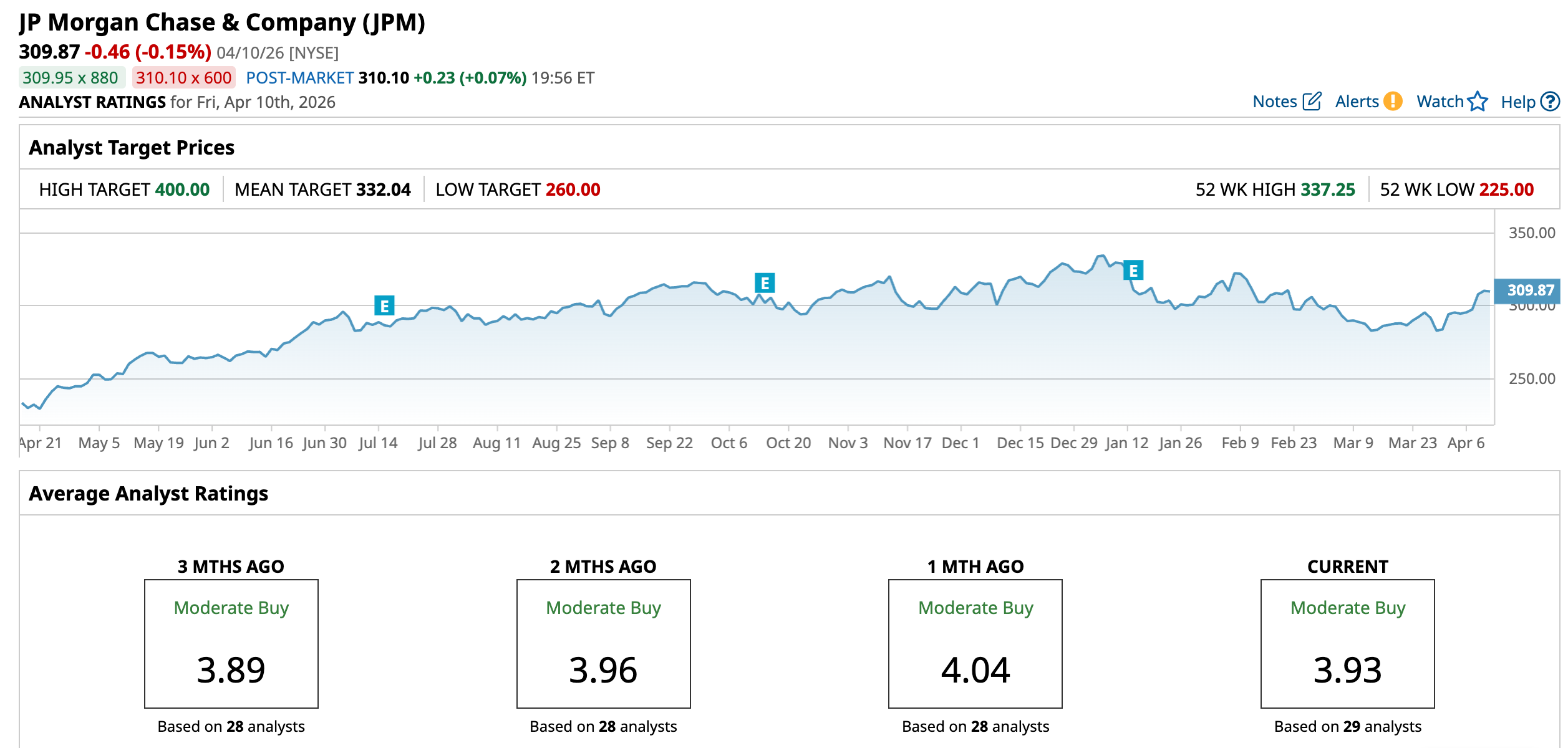 Analysts still see steady growth ahead for JPMorgan. For the March 2026 quarter, the average earnings estimate is $5.46 per share, up from $5.07 a year ago, which points to 7.69% growth. For the June quarter, the estimate is $5.33 versus $4.96 last year, or 7.46% growth. Looking further out, Wall Street expects JPMorgan to earn $21.79 per share in 2026 and $23.34 in 2027, up from $20.34 and $21.79, respectively.