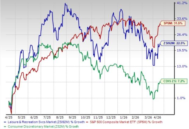 The Zacks Leisure and Recreation Services industry has underperformed the Zacks S&P 500 composite but outperformed its sector in the past year. Stocks in the industry have collectively grown 22.5% in the past year compared with the broader sector’s growth of 7.2%. The S&P 500 has risen 31.5% in the said time frame.