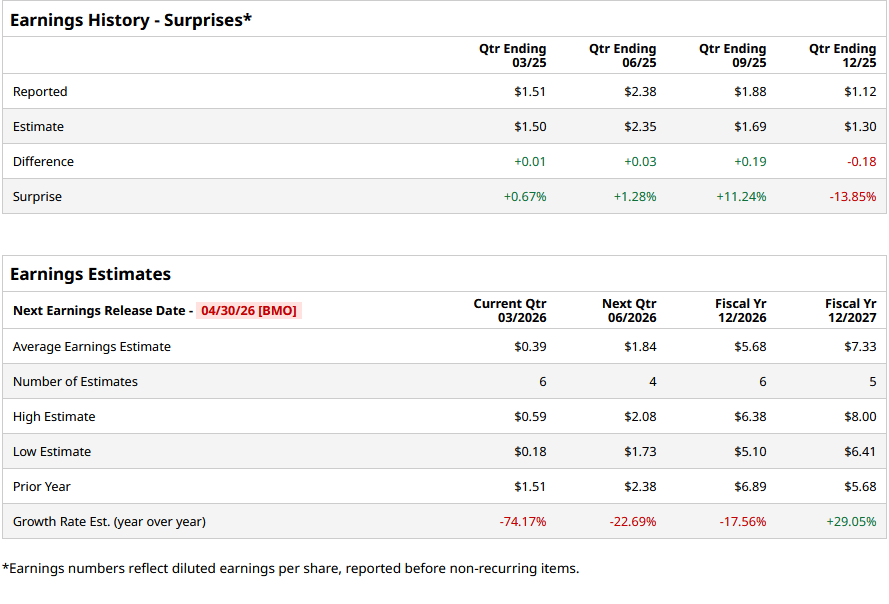 For fiscal 2026, analysts project the company’s EPS to be $5.68, down 17.6% from $6.89 in fiscal 2025. However, its EPS is expected to rise by roughly 29.1% year over year (YoY) to $7.33 in fiscal 2027.