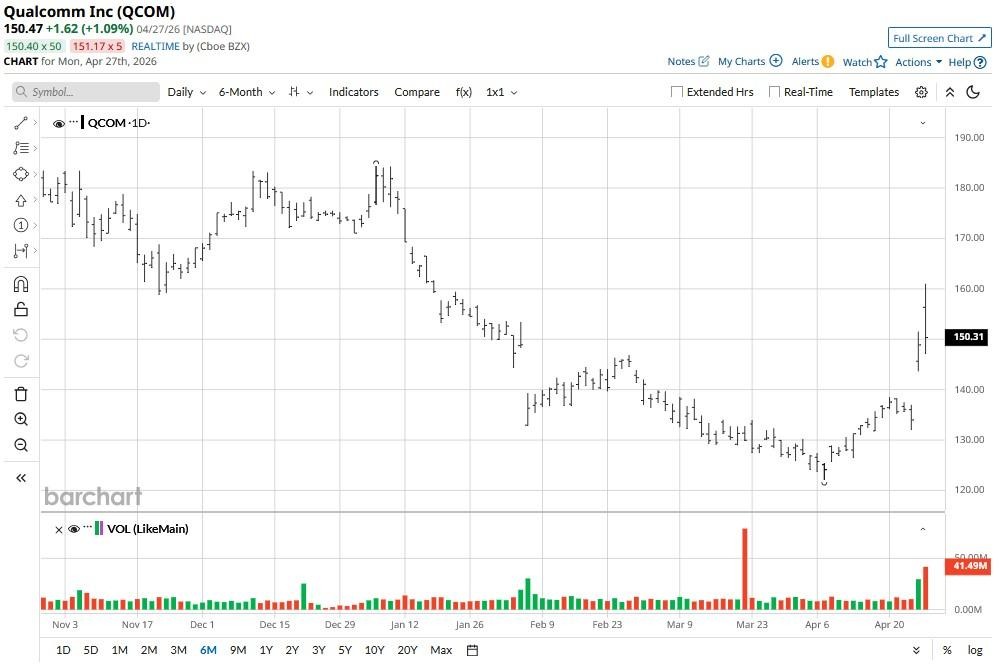 Today’s rally brings a much-needed reprieve to Qualcomm shares, which have otherwise been a laggard in 2026, currently down about 17% from their year-to-date high.