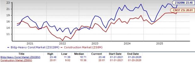 Data Centers, Grid, and Industrialized Infrastructure: A central structural driver into 2026 is the AI/data-center buildout. The data center boom is fueling growth for U.S. heavy construction firms by driving demand for large-scale site development, power infrastructure, and specialized mechanical systems. These long-term, high-value projects enhance backlog visibility, regional expansion, and margin performance. Overall, the data center boom, fueled by AI and digital infrastructure needs, is reshaping the U.S. heavy construction landscape, favoring firms with technical expertise, national reach, and the ability to execute high-value, mission-critical infrastructure. On the power side, the companies frame the grid as a multi-year CapEx cycle driven by load growth against aging infrastructure, expecting substantial investment across transmission, substations, distribution and new generation capacity. The U.S. administration’s ambitious infrastructure plan, aimed at creating modern, sustainable infrastructure and a cleaner future, is set to have significant implications for the economy and the construction industry over the next five years. By laying the groundwork for sustainable growth, the plan seeks to mitigate the effects of climate change and enhance public health, ensuring access to clean air and water. This expansive infrastructure agenda could be a major boost for companies involved in construction and related sectors.
