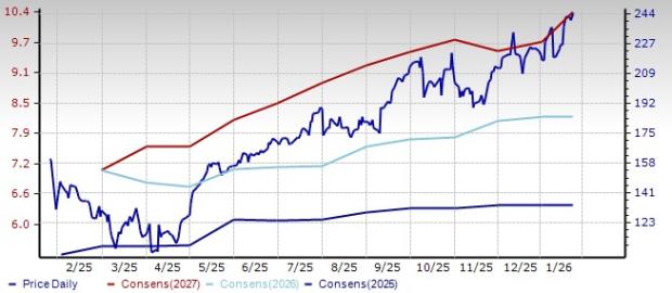 Dycom, currently carrying a Zacks Rank #3, has gained 95.8% over the past year. Earnings estimates for fiscal 2026 and 2027 have increased to $10.71 per share from $10.57 and $14.45 per share from $13.44 over the past 60 days. The estimated value for fiscal 2027 is expected to increase 35% from the previous year. DY surpassed earnings estimates in all the trailing four quarters, with the average surprise being 22.7%.