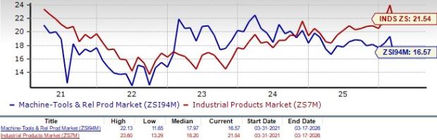 On the basis of forward 12-month Price-to-Earnings (P/E), which is a commonly used multiple for valuing manufacturing tools and related product stocks, the industry is currently trading at 16.57X compared with the S&P 500’s 21.63X. It is also below the sector’s P/E (F12M) ratio of 21.54X.