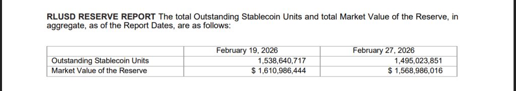The bigger validation came weeks earlier. On February 27, Deloitte — one of the world’s largest accounting firms — confirmed that RLUSD held $1.568 billion in reserves against 1.49 billion tokens.