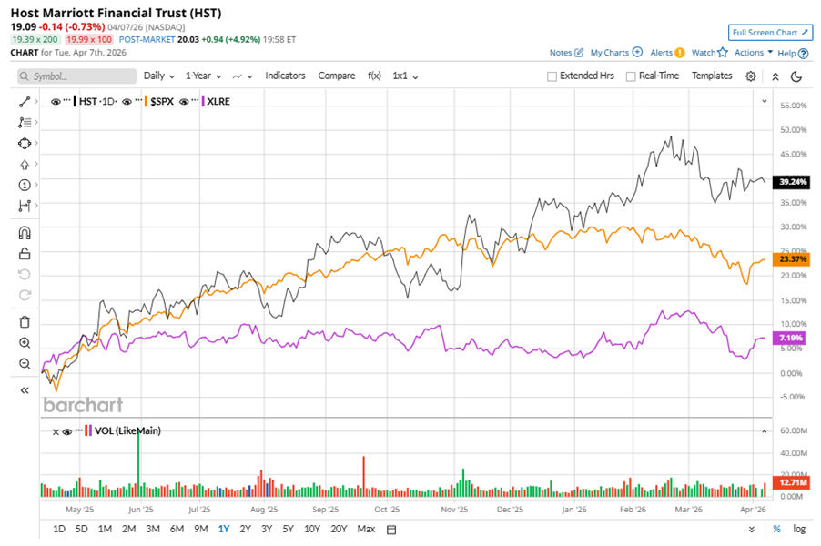 HST stock has outperformed the S&P 500 Index’s ($SPX) 30.7% gains over the past 52 weeks, with shares up 47.8% during this period. Similarly, it notably outpaced the State Street Real Estate Select Sector SPDR ETF’s (XLRE9.7% uptick over the same time frame.
