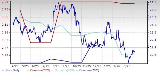 The industry’s positioning in the bottom 50% of the Zacks-ranked industries is a result of a lower earnings outlook for the constituent companies in aggregate. Looking at the aggregate earnings estimate revisions, it appears that analysts are gradually losing confidence in this group’s earnings growth potential. Since February 2026, the industry’s earnings estimates for 2026 have decreased to $2.04 per share from $2.22.