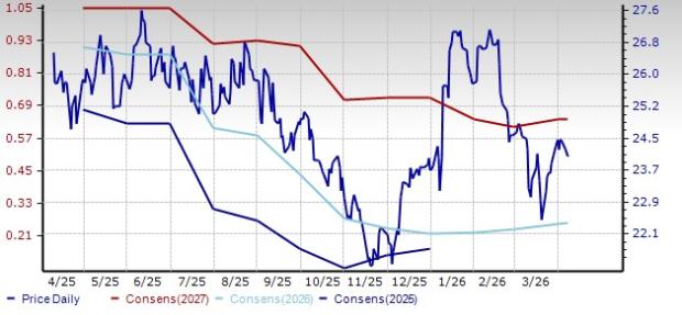 Weyerhaeuser — a Zacks Rank #3 company — has lost 3.2% over the past year. The company has seen an upward estimate revision for 2026 earnings to 26 cents from 25 cents per share over the past seven days. The Zacks Consensus Estimate for its 2026 EPS implies 30% year-over-year growth on 2% growth in revenues. Weyerhaeuser’s earnings surpassed the consensus mark in the last three reported quarters and met on one occasion, with the average being 59.1%.