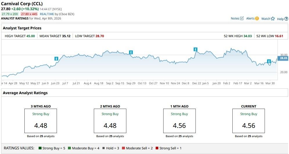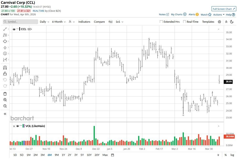 Carnival (CCL) shares are inching higher on April 8 after a sudden de-escalation in the Middle East sent waves of optimism through the entire travel sector.