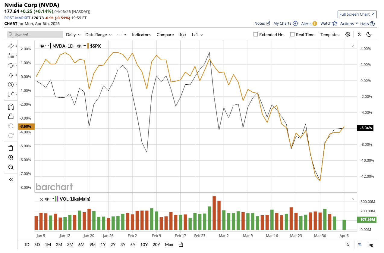 Nvidia has dominated the AI space, powering everything from large language models (LLMs) to hyperscale data centers. Over the past five years, NVDA stock has returned around 1,019%. Despite this dominance, the stock that has powered the market over the last few years is suprisingly suffering a rough patch this year. Nvidia stock is down 3% year-to-date (YTD), compared to the overall market's dip of 1% YTD.