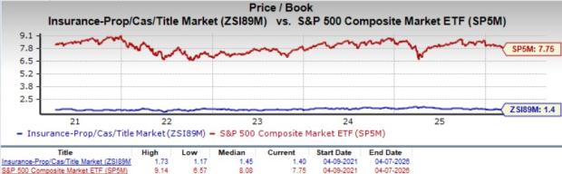 On the basis of the trailing 12-month price-to-book (P/B), which is commonly used for valuing insurance stocks, the industry is currently trading at 1.4X compared with the S&P 500’s 7.75X and the sector’s 4.08X.