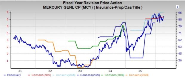 The Zacks Consensus Estimate for MCY’s 2026 earnings suggests 13.9% year-over-year growth. It delivered a four-quarter average earnings surprise of 55.08%.  It has a VGM Score of A.