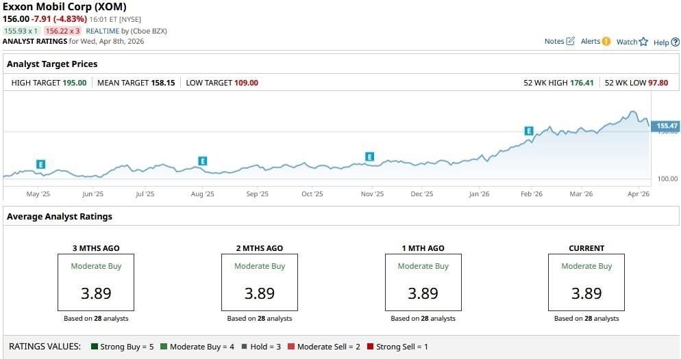 The consensus rating on XOM stock sits at a “Moderate Buy” with price targets going as high as $195, indicating potential upside of more than 25% from here.