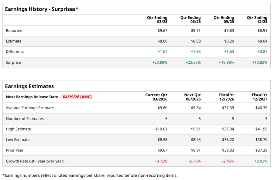 Equinix, Inc. (EQIX), headquartered in Redwood City, California, operates as a real estate investment trust. With a market cap of $100.4 billion, the company invests in interconnected data centers. Equinix focuses on developing network and cloud-neutral data center platform for cloud and information technology, enterprises, network, and mobile services providers, as well as for financial companies. The world's digital infrastructure company is expected to announce its fiscal first-quarter earnings for 2026 after the market closes on Wednesday, Apr. 29.