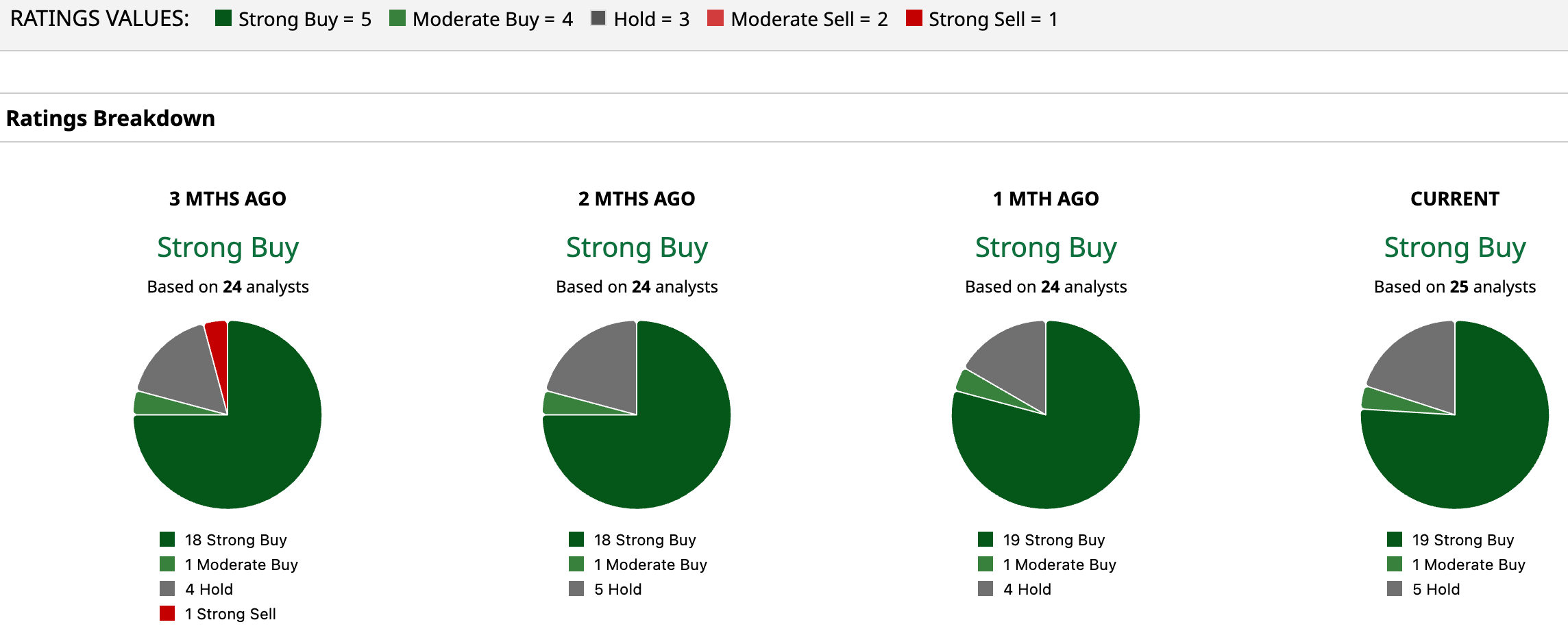 The overall sentiment on Wall Street toward Seagate is overwhelmingly positive. The stock currently carries a “Strong Buy” consensus rating, underscoring growing confidence in its AI-fueled growth trajectory. Among the 25 analysts covering the name, a striking 19 recommend “Strong Buy,” with only one “Moderate Buy” and five opting to stay on the sidelines with “Hold” ratings, tilting the balance heavily in favor of bulls.