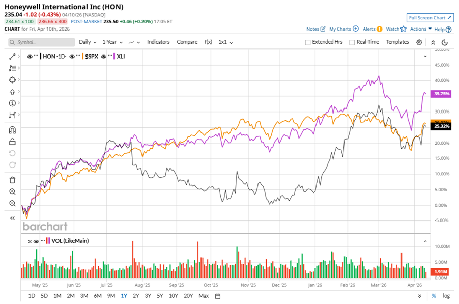 HON stock has underperformed the S&P 500 Index’s ($SPX) 29.4% gains over the past 52 weeks, with shares up 28.8% during this period. Similarly, it underperformed the State Street Industrial Select Sector SPDR ETF’s (XLI38.9% gains over the same time frame.