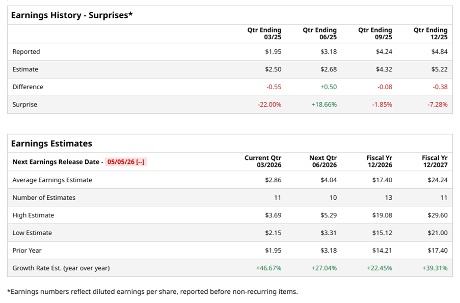 For the full year, analysts expect FSLR to report EPS of $17.40, up 22.5% from $14.21 in fiscal 2025. Its EPS is expected to rise 39.3% year over year to $24.24 in fiscal 2027.