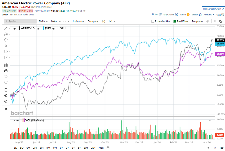 Shares of AEP have rallied 32.1% over the past 52 weeks, outperforming both the S&P 500 Index's ($SPX29.4% return and the Utilities Select Sector SPDR Fund’s (XLU24.6% rise over the same time frame.