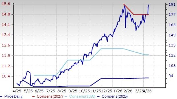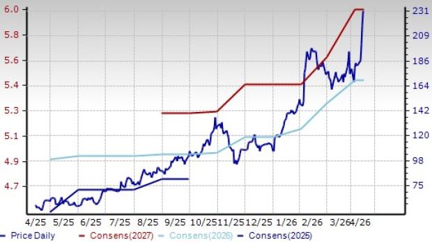 EnerSys: Based in Pennsylvania, EnerSys is engaged in the manufacturing, marketing and distribution of various industrial batteries. ENS is well-positioned to benefit from solid momentum in the Specialty segment, driven by strong momentum in the aerospace and defense end market. The expansion of U.S. communications networks, fueled by AI-driven data demand within the Energy Systems segment, also bodes well for it.