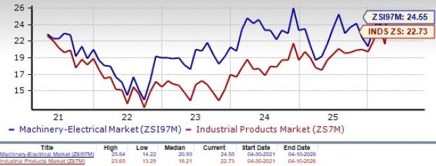 On the basis of forward 12-month Price-to-Earnings (P/E), which is a commonly used multiple for valuing manufacturing stocks, the industry is currently trading at 24.55X compared with the S&P 500’s 21.29X. It is also above the sector’s P/E ratio of 22.73X.