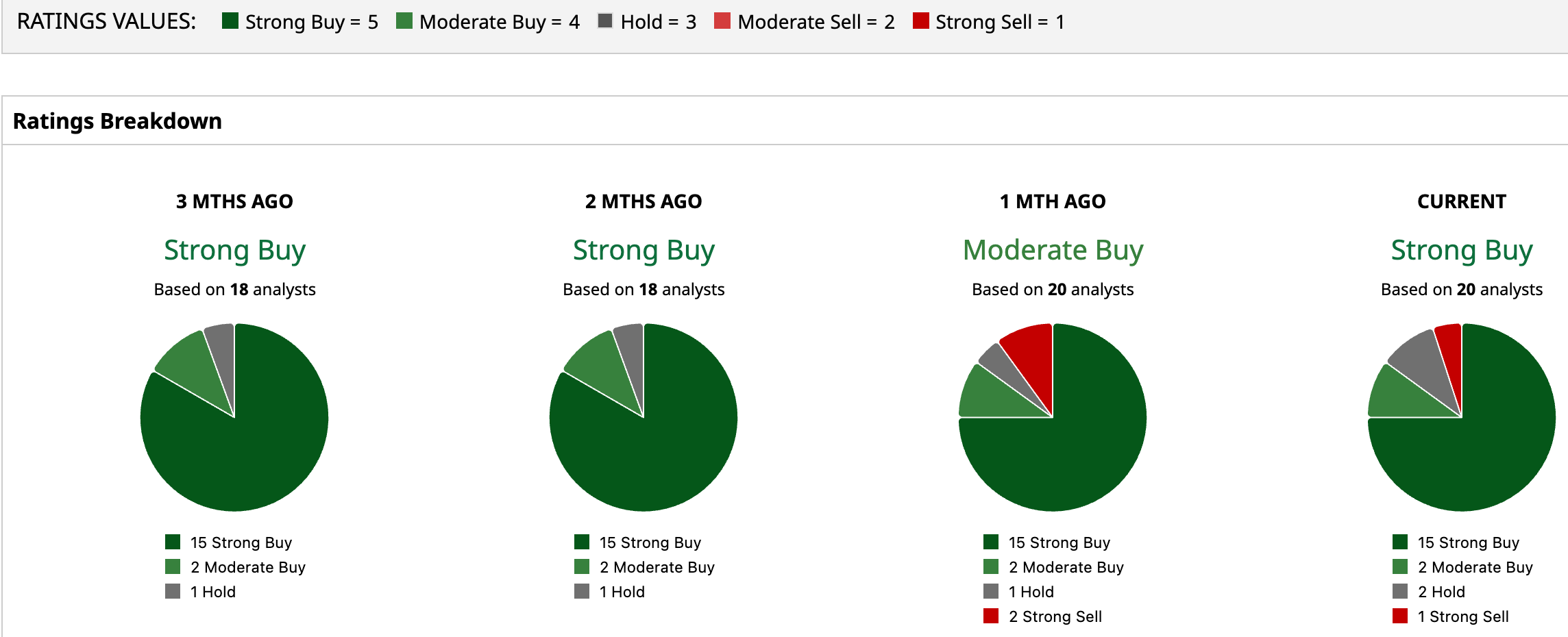 Analysts are confident, with AVAV stock having an overall “Strong Buy” rating. Of the 20 analysts tracking the stock, 15 recommend a “Strong Buy,” two have a “Moderate Buy,” two are cautious with a “Hold” rating, while the remaining one analyst takes a bearish stance, advising a “Strong Sell.”