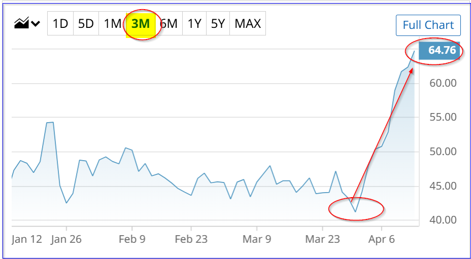 INTC stock - last 3 months - Barchart - April 13