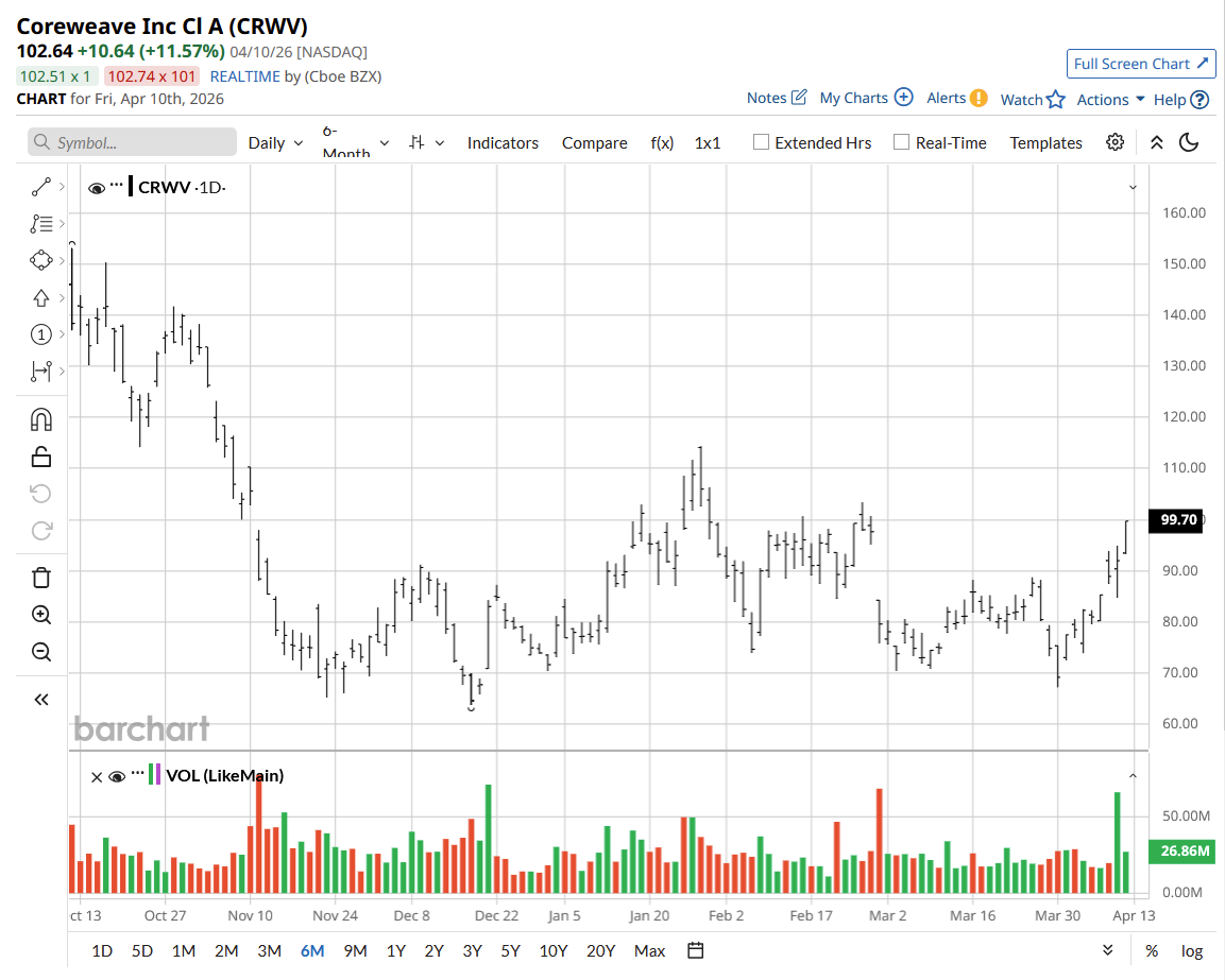 This latest agreement with Meta once again proves how reliable CoreWeave’s AI cloud offerings continue to be. The firm already works with Microsoft (MSFT), which is its largest client. In September 2025, CoreWeave also signed a $6.5 billion agreement with OpenAI. Despite all of the success, though, CRWV stock is still down 40% from its June 2025 highs, warranting further investigation into why shares have struggled to regain prior footing.