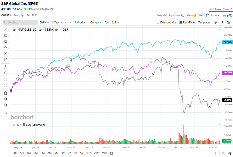 SPGI stock has dipped 7.5% over the past year, underperforming the S&P 500 Index’s ($SPX28.4% rise and the State Street Financial Select Sector SPDR ETF’s (XLF10.7% return during the same time frame.