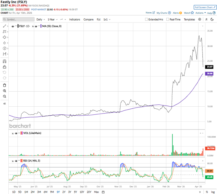 Edge-cloud platform stocks like Fastly (FSLY) experienced a massive drop after popular AI company Anthropic announced its Claude Managed Agents. The company’s stock dropped 21.7% intraday on Apr. 10 on the news, after a 10.1% drop on Apr. 9. It must be mentioned that the stock has surged robustly over the past year before this dip.