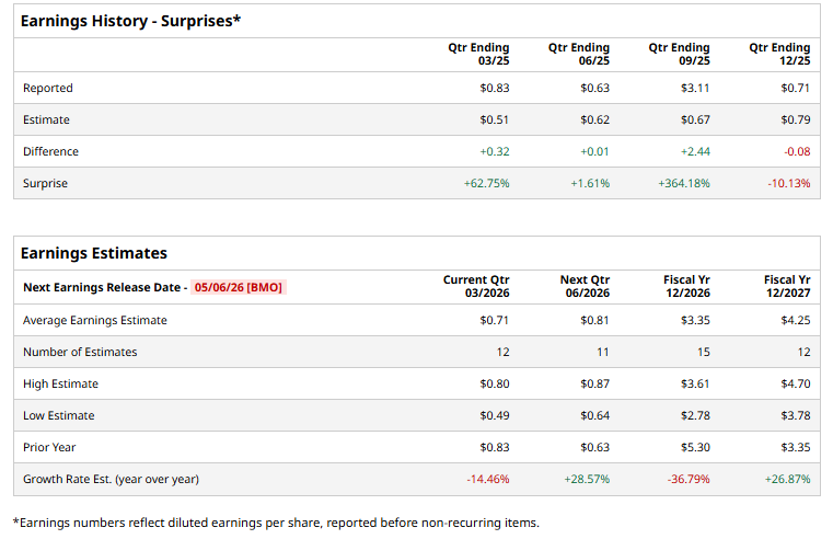 For the current year, analysts expect the company to report EPS of $3.35, down 36.8% from $5.30 in fiscal 2025. However, its EPS is expected to rise 26.9% year over year to $3.60 in fiscal 2027.