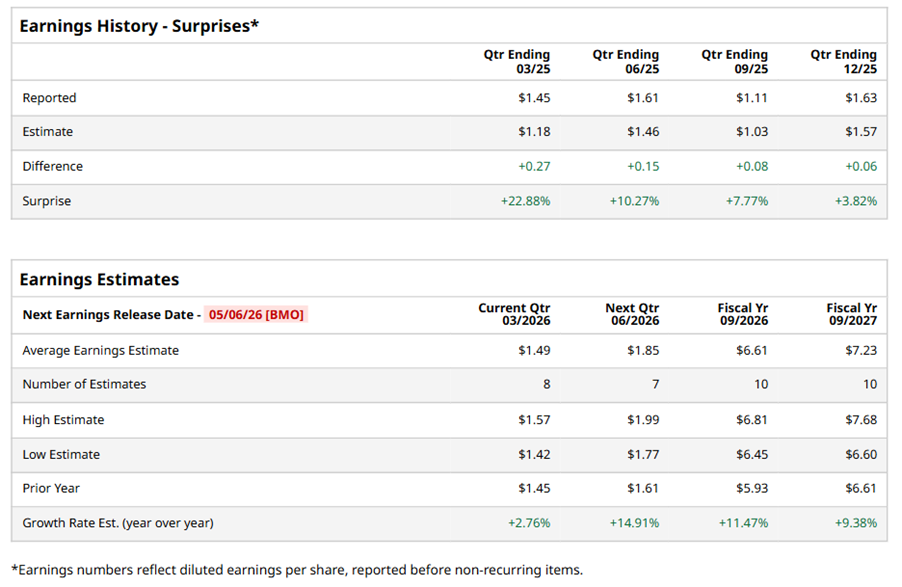 For the full year, analysts expect DIS to report EPS of $6.61, up 11.5% from $5.93 in fiscal 2025. Its EPS is expected to rise 9.4% year over year to $7.23 in fiscal 2027.