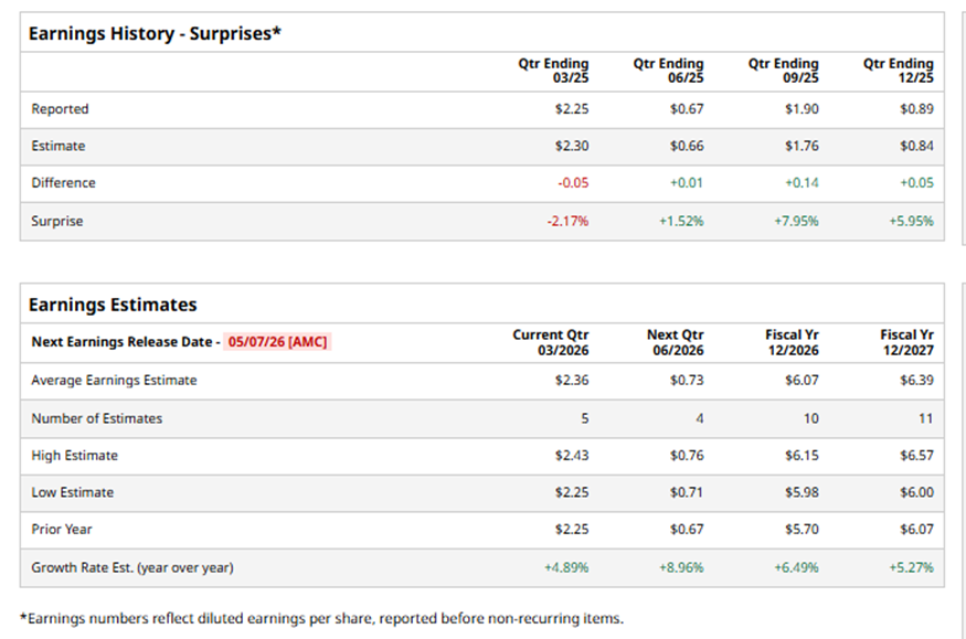 Consolidated Edison, Inc. (ED), headquartered in New York, engages in the regulated electric, gas, and steam delivery businesses. With a market cap of $40.6 billion, the company is committed to providing safe and reliable energy services to millions of customers across its service territories. The leading utility is expected to announce its fiscal first-quarter earnings for 2026 after the market closes on Thursday, May 7.