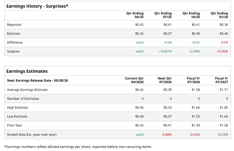 It is expected to announce its fiscal Q3 earnings for 2026 in the near future. Before this event, analysts expect this online car auction company to report a profit of $0.42 per share, flat from the year-ago quarter. The company has met or surpassed Wall Street’s bottom-line estimates in three of the last four quarters, while missing on another occasion.
