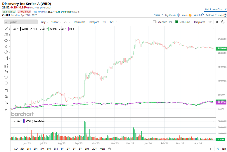 Shares of the global entertainment powerhouse have seen a sharp rise over the past year. WBD has jumped 212.2% over this time frame, while the broader S&P 500 Index ($SPX) has rallied 29.8%. However, in 2026, the stock has pulled back, falling 6.9%, trailing the SPX’s 4.8% rise.