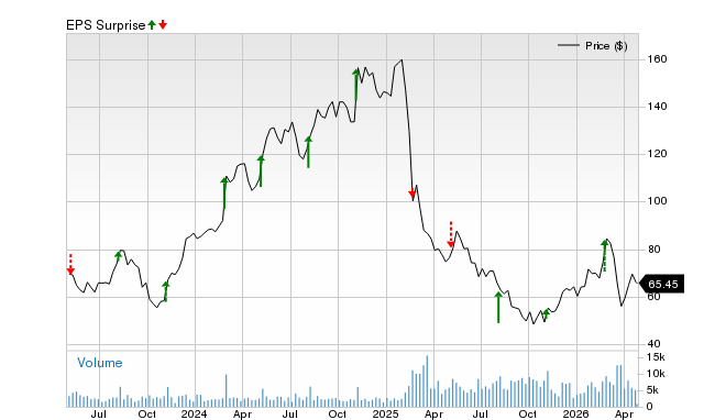 This seller of refrigerated fresh pet food has seen a nice streak of beating earnings estimates, especially when looking at the previous two reports. The average surprise for the last two quarters was 27.91%.