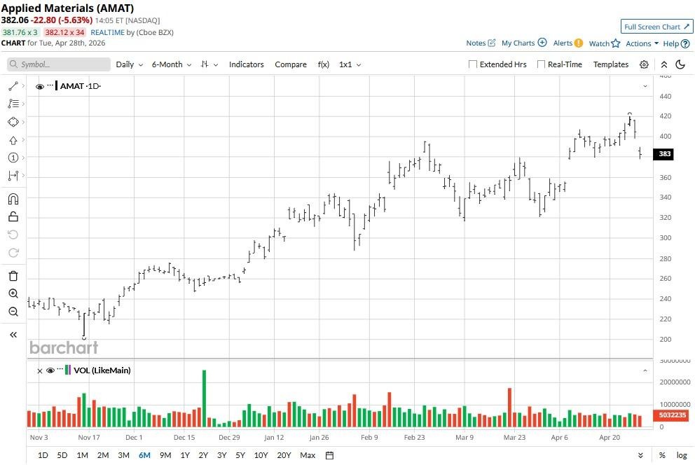 Despite the pullback, however, Applied Materials stock remains up a whopping 43% year-to-date.
