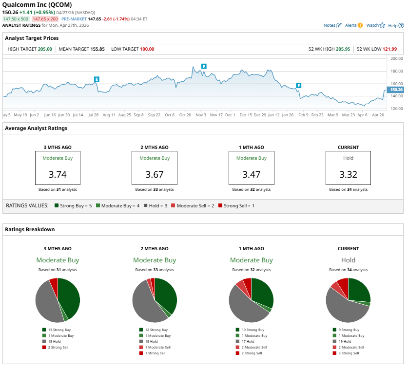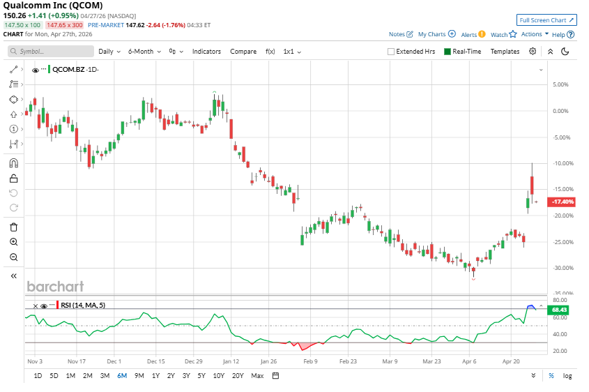 Qualcomm (QCOM) will release its second-quarter fiscal 2026 earnings on April 29. The company continues to benefit from steady consumer demand for smartphones and strong positioning of its Snapdragon products. Growth is also being supported by expanding momentum in its automotive and IoT segments. However, broader industry challenges, such as limited memory supply and a slowdown in chip orders, may put pressure on both revenue and earnings in Q2.