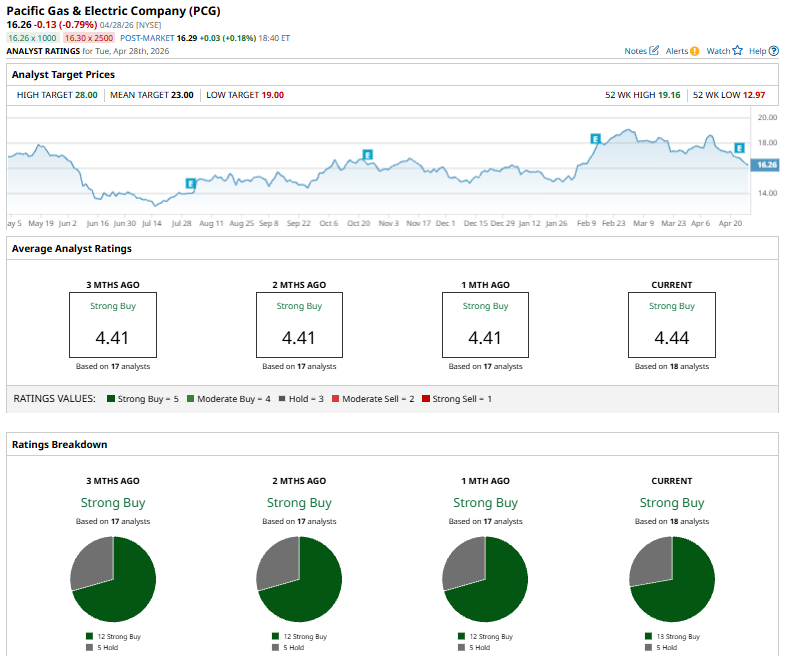 Among the 18 analysts covering PCG stock, the consensus is a “Strong Buy.” That’s based on 13 “Strong Buy” ratings and five “Holds.”