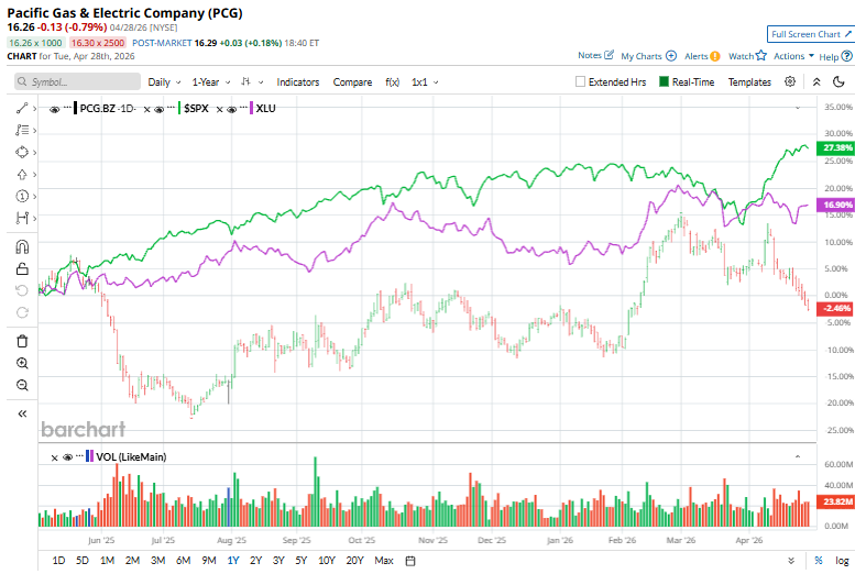 Shares of this leading gas and electricity provider have underperformed the broader market over the past year. PCG has declined 5.9% over this time frame, while the broader S&P 500 Index ($SPX) has rallied nearly 29.1%. In 2026, PCG stock is up 1.2%, compared to the SPX’s 4.3% rise on a YTD basis.