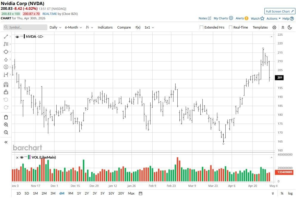 Nvidia (NVDA) shares were seen trading under $200 again on April 30 as Big Tech earnings made investors nervous about rising competition from the likes of Amazon (AMZN) and Alphabet's (GOOG) (GOOGL) Google.
