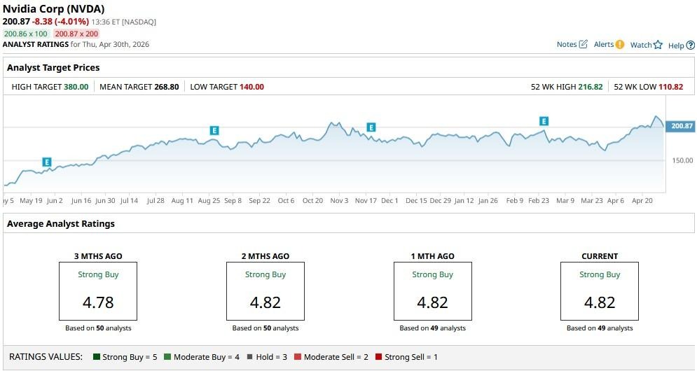 The consensus rating on Nvidia is currently “Strong Buy," with the mean price target of about $269 indicating potential upside of nearly 35% from here.