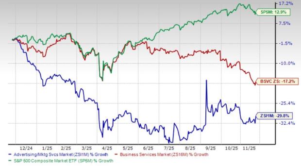 Over the past year, the Zacks Advertising and Marketing industry has underperformed the S&P 500 composite and the broader sector. The industry has declined 30% compared to the S&P 500 composite’s growth of 13% and the broader sector’s decline of 17%.