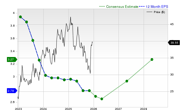 The company is expected to earn $2.65 per share for the full year, which represents a change of -9.3% from the prior-year number.
