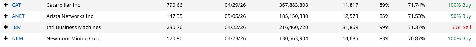 This screener produces the following results sorted by IV Rank.