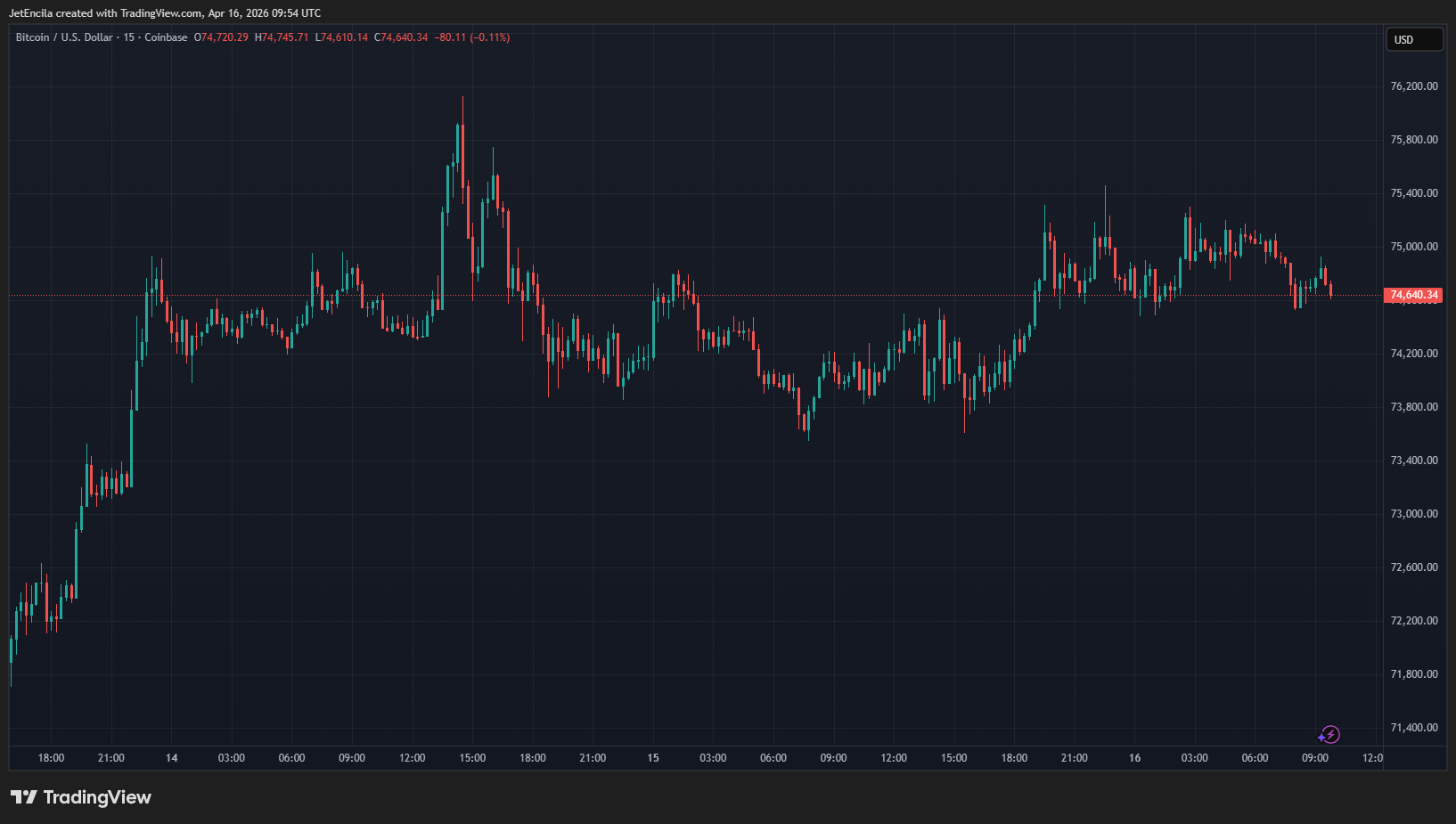 Bitcoin mantuvo el ritmo. La criptomoneda más grande del mundo alcanzó brevemente $76,000 el miércoles, con una subida de aproximadamente el 1,20% en las últimas 24 horas. Ese movimiento formó parte de una tendencia más amplia — BTC ha subido casi el 10% en las últimas dos semanas.