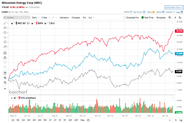 Shares of WEC have surged 6.9% over the past 52 weeks, underperforming both the S&P 500 Index’s ($SPX34.9% rise and the State Street Utilities Select Sector SPDR ETF’s (XLU18.7% return during the same time frame.