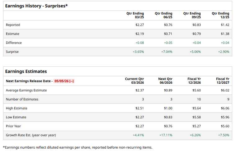 For the current year, analysts forecast the company to report an EPS of $5.60, indicating a 6.3% increase from $5.27 reported in fiscal 2025. Also, its EPS is expected to grow 7.5% year over year to $6.02 in fiscal 2027.