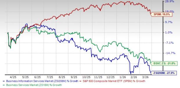 Over the past year, the Zacks Business – Information Services industry has underperformed the Zacks Business Services sector and the S&P 500 Composite.