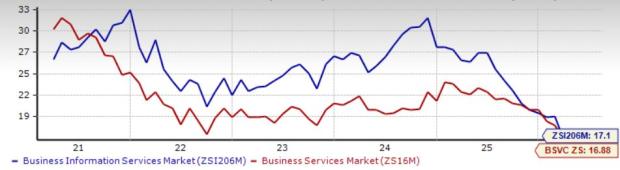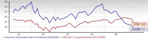 Based on the forward 12-month price-to-earnings (P/E), which is commonly used for valuing business information services stocks, the industry is currently trading at 17.1X compared with the S&P 500’s 19.99X and the sector’s 16.88X.