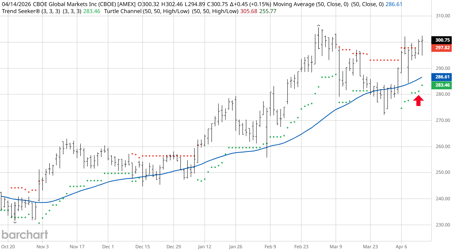 Cboe Global Markets (CBOE) is one of the exchanges that should benefit immensely from the ruling. Notice how Trend Seeker signaled a new buy just two days ago.